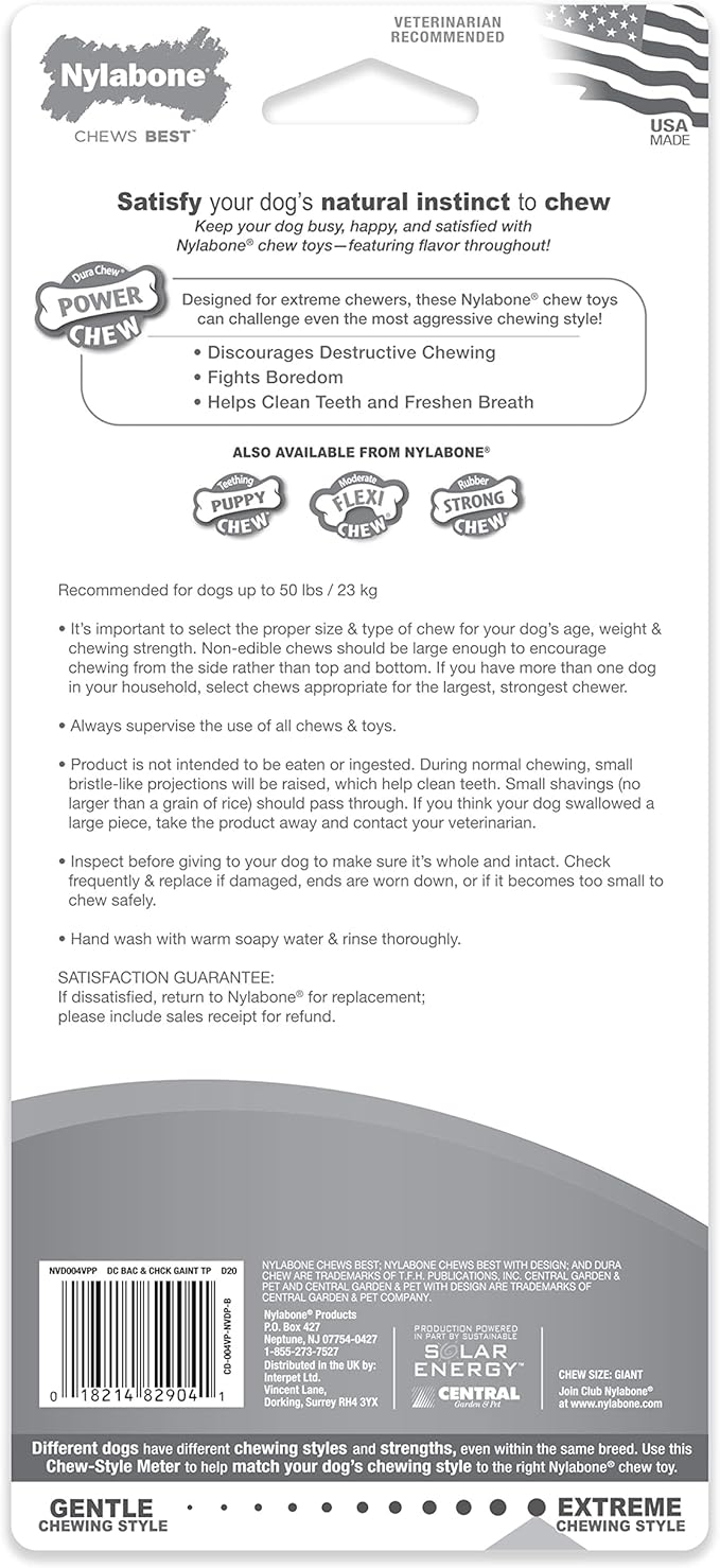 Nylabone Power Chew Classic Bone Chew Toy for Dogs, Durable Dog Toys for Aggressive Chewers, Chicken Flavor, Large/Giant - Up to 50 lbs. (2 Count)
