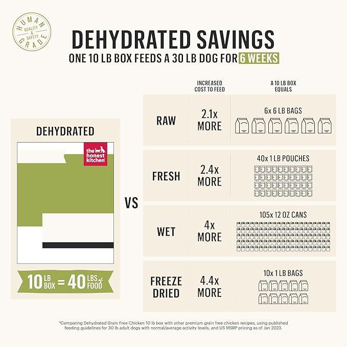 - MAKES 40 LBS OF FOOD: Just add warm water for a wholesome & delicious meal that rehydrates to 4x its weight. A 10 LB box makes 40 LBs of fresh food! Serve alone as a complete easy homemade meal, or use as a topper to dry food.