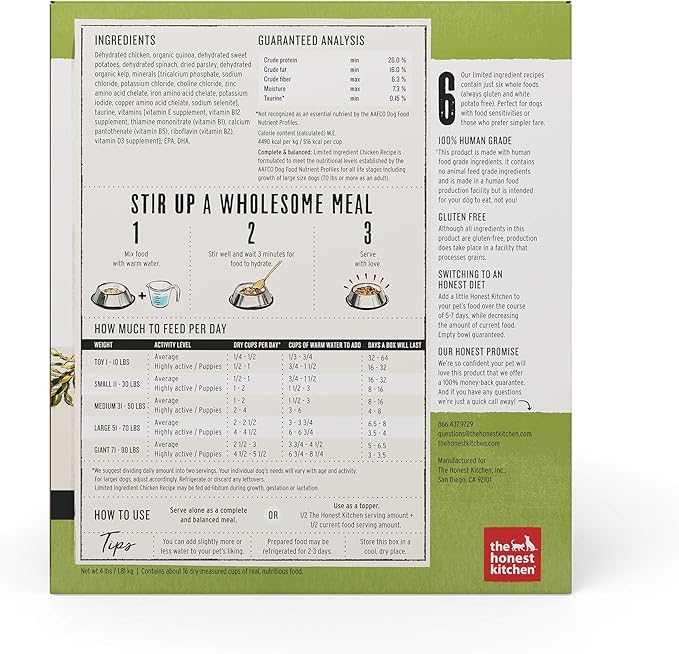 The Honest Kitchen Dehydrated Limited Ingredient Chicken Dog Food, 4 lb Box