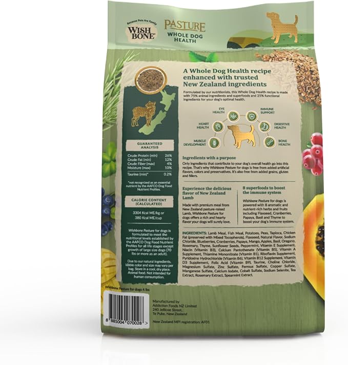 Wishbone Pasture New Zealand Lamb Dry Dog Food, Gluten-Free, Grain-Free Formula for Overall Pet Health - 4 lb