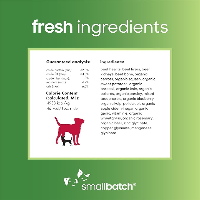 Smallbatch Pets Freeze-Dried Premium Raw Food Diet for Dogs, Beef Recipe, 14 oz, Made in The USA, Organic Produce, Humanely Raised Meat, Hydrate and Serve Patties, Single Source Protein, Healthy