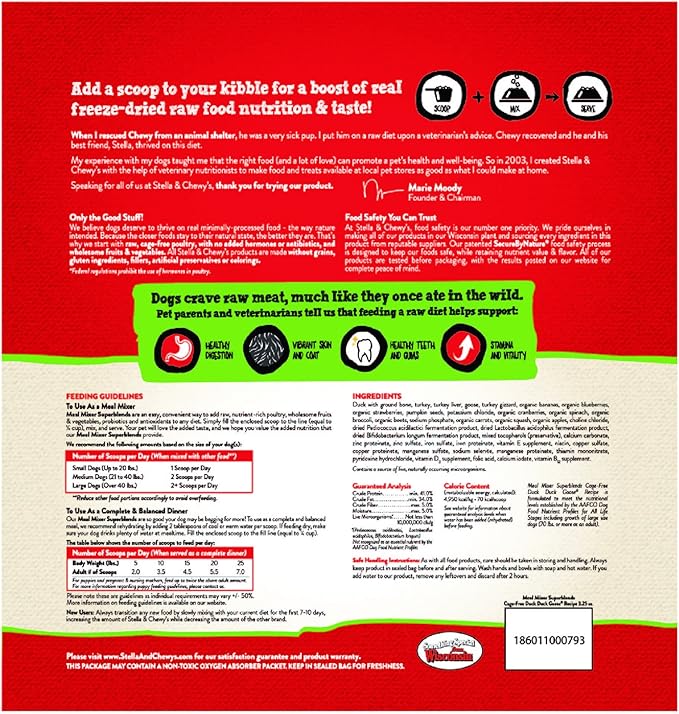 Stella & Chewy's Freeze-Dried Raw Cage-Free Duck Meal Mixer SuperBlends Grain-Free Dog Food Topper, 16 oz. bag, Freeze-Dried Raw Meal Mixer SuperBlends