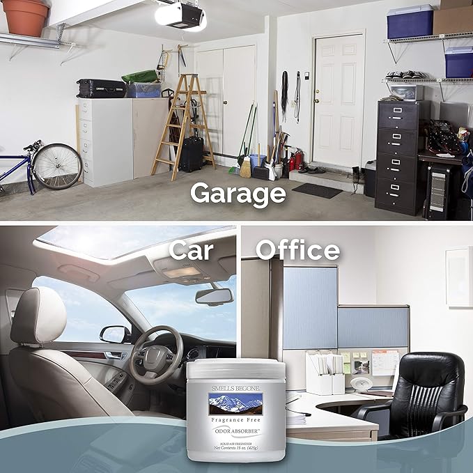 SMELLS BEGONE Air Freshener Odor Absorber Gel - 15 oz, Pack of 2 - Absorbs and Eliminates Odor in Pet Areas, Bathrooms, Cars, & Boats - Made with Essential Oils - Fragrance Free