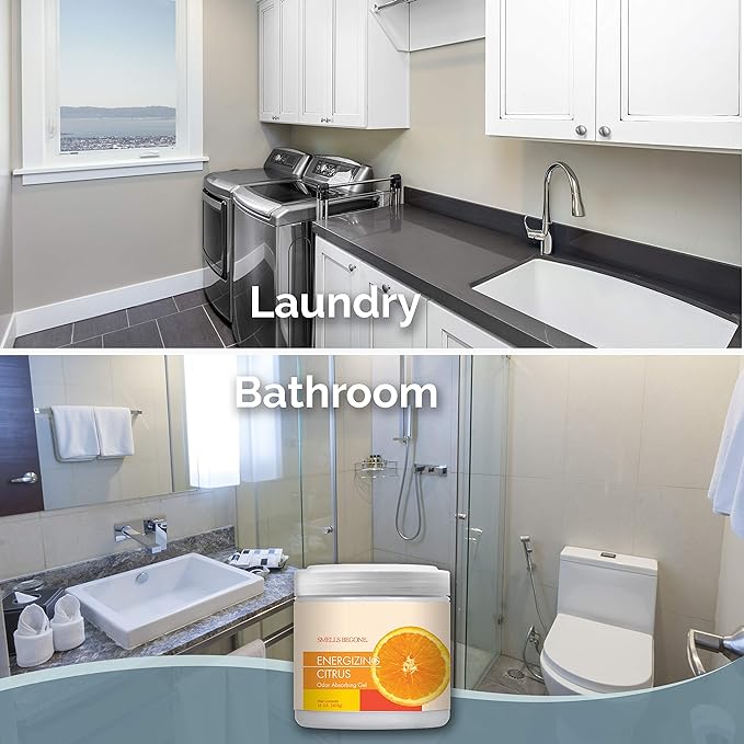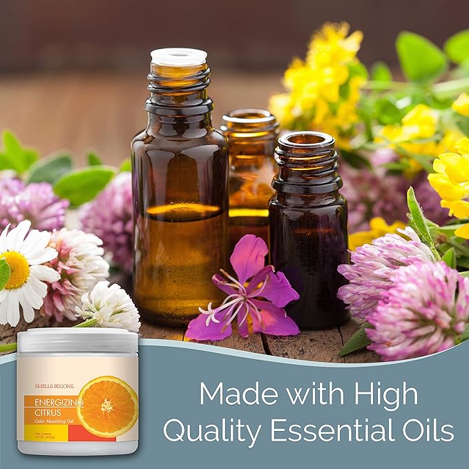 SMELLS BEGONE Air Freshener Odor Absorber Gel - 15 oz, Pack of 2 - Absorbs and Eliminates Odor in Pet Areas, Bathrooms, Cars, & Boats - Made with Essential Oils - Energizing Citrus Scent