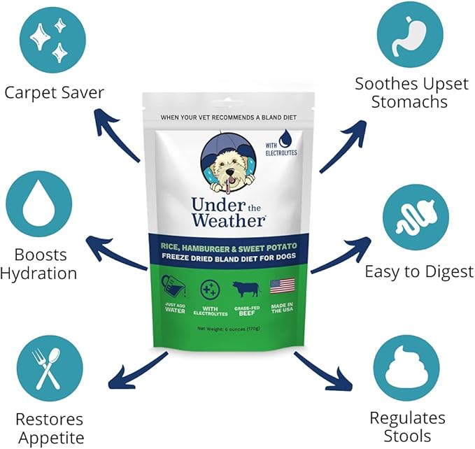 Under the Weather Bland Diet for Dogs | Easy to Digest for Sick Dogs |Always Be Ready| Contains Electrolytes - Natural Freeze Dried 100% Human Grade Meats| 1 Pack- Rice, Hamburger & Sweet Potato - 6oz