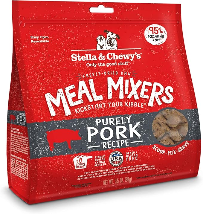 Stella & Chewy's Freeze Dried Raw Purely Pork Meal Mixer – Dog Food Topper for Small & Large Breeds – Grain Free, Protein Rich Recipe – 3.5 oz Bag