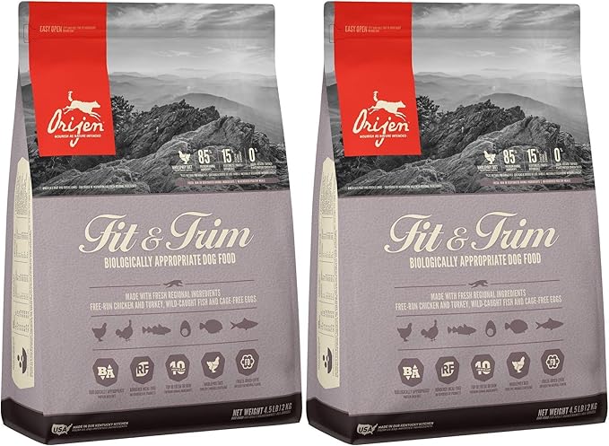 Orijen 2 Pack of Fit & Trim Dog Food, 4.5 Pounds Each, Grain-Free Kibble Made in The USA