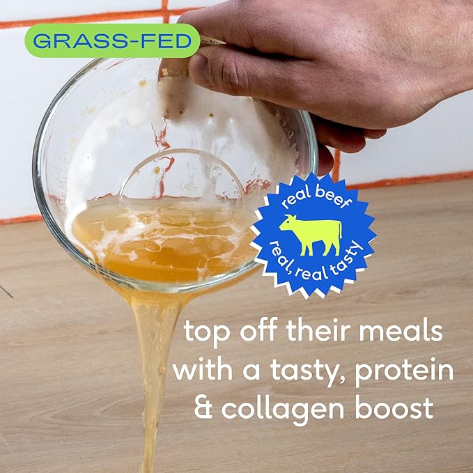 - Bone Broth Boost: Easy-to-use bone broth for pets, perfect as dog food toppers. Just sprinkle the bone broth powder on your dog’s kibble or your cat’s dry food. A must-have in your pet supplies collection