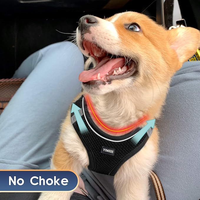 YIMEIS Dog Harness and Leash Set, No Pull Soft Mesh Pet Harness, Reflective Adjustable Puppy Vest for Small Dogs, Cats (M, Black) fit Small