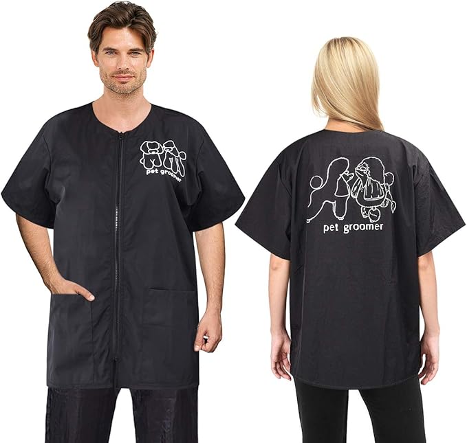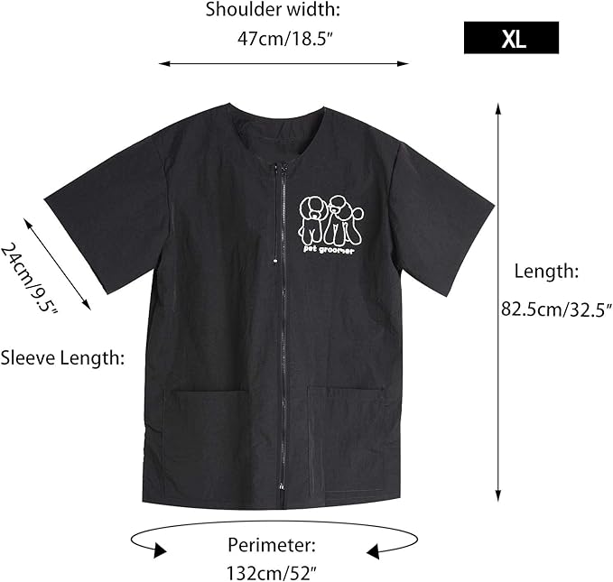 - 【Handy Pocket & Front Zipper】-- Double-sided pocket design, convenient to carry small grooming kit when it is necessarily and it is a professional work clothes for pet workers. This product features round neck with a full zipper which can slip on and off easily.