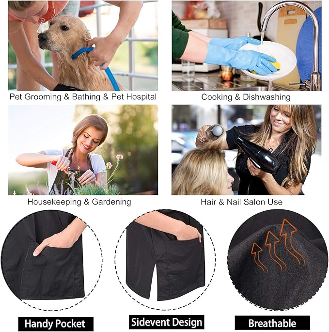 - 【Stay Dry Styling】 – Polyester fabric which is static free, water proof, repelling chemicals and bleach, it keeps your clothing clean and protects yourself from flying hair and suds. Whether for professional pet shop use or home use, this apron is an ideal addition to your toolkit.