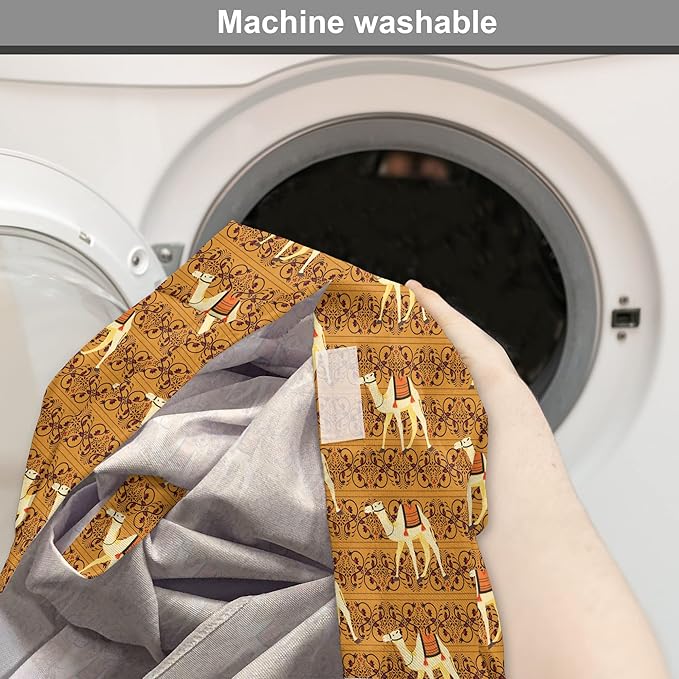 Lunarable Camel Dog Crate Cover, Traditional Pattern with Strokes Desert Animal Repetition in Folk Accessories, Easy to Use Pet Kennel Cover for Medium Large Dogs, 36 Inch, Apricot and Cream