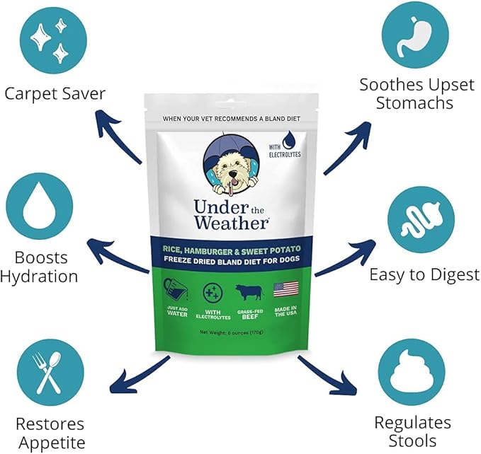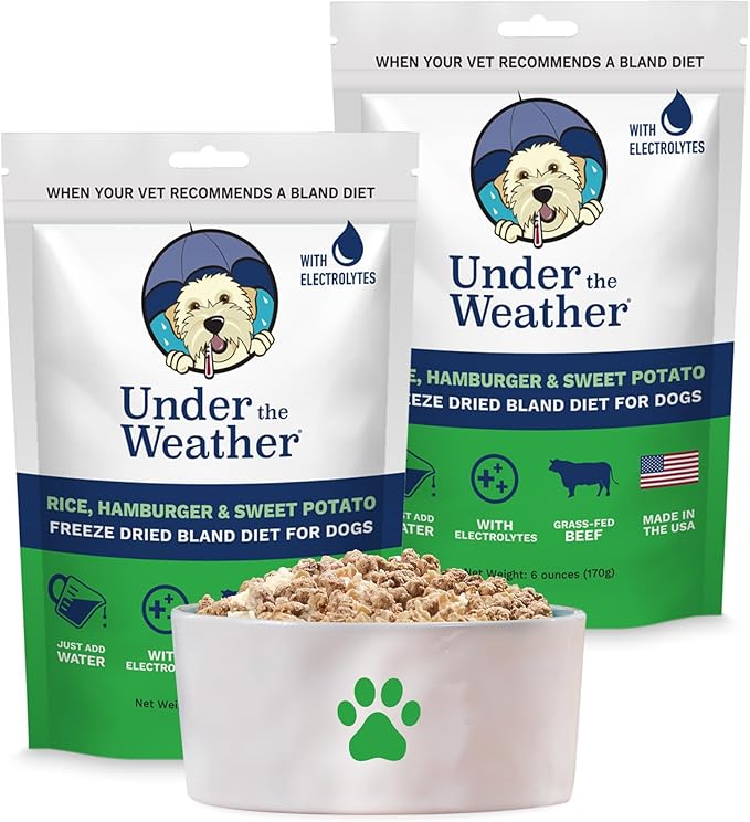 Under the Weather Bland Diet for Dogs | Easy to Digest for Sick Dogs |Always Be Ready| Contains Electrolytes - Natural Freeze Dried 100% Human Grade Meats| 2 Pack- Rice, Hamburger & Sweet Potato - 6oz