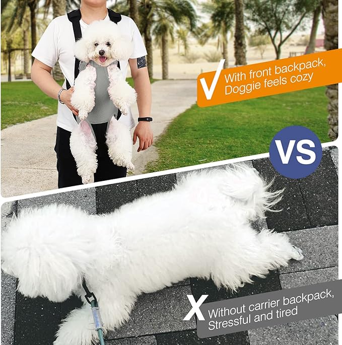 - Two Ways of Wearing: A hands-free pet carrier can be worn on your front side or your backside if you like, it keeps you closer and increases pet's sense of security when you carry your cat or dog around. Meanwhile, the thickened sponge pad helps to relieve the burden of your shoulder.