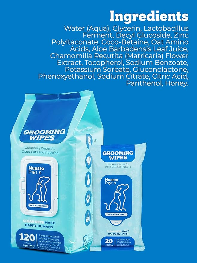 - Versatile & Convenient: Nuesta Pet Wipes are easy to use and perfect for cleaning paws, ears, butts, & face in dogs, cats, and puppies. Keep them handy for quick clean-ups after walks, hikes, or play