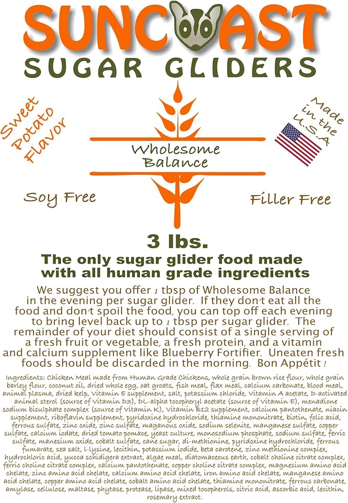 Wholesome Balance Chicken and Brown Rice Sugar Glider Food Sweet Potato Flavor (3 Pound)