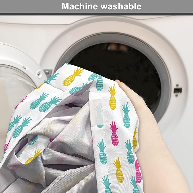Lunarable Yellow Pineapple Dog Crate Cover, Rhythmic Ananas Fruits in Colorful Design Summer Tropical Concept, Easy to Use Pet Kennel Cover for Medium Large Dogs, 42 Inch, Turquoise Hot Pink