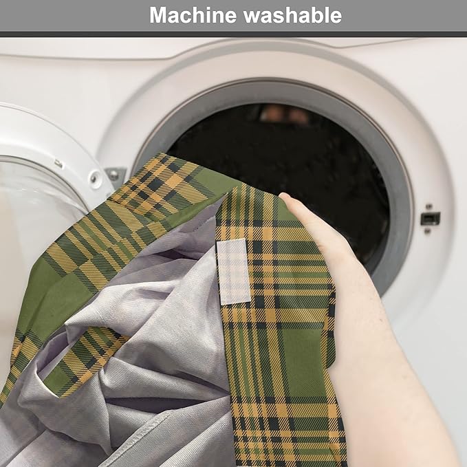 Lunarable Plaid Dog Crate Cover, Tartan Pattern in Autumn Tones Old Fashioned Design Country Illustration, Easy to Use Pet Kennel Cover for Small Dogs Puppies Kittens, 22 Inch, Olive Green Mustard