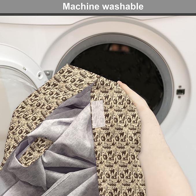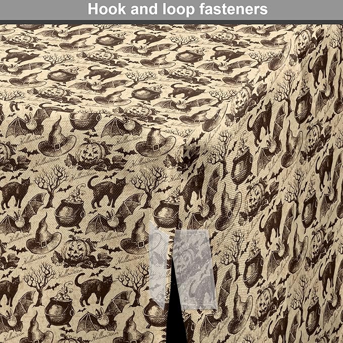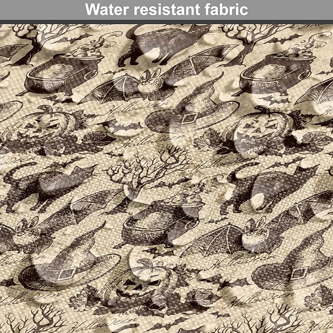 Lunarable Vintage Halloween Dog Crate Cover, Halloween Witch Hat Cauldron Fall Jack o' Lantern Black Cat, Easy to Use Pet Kennel Cover for Medium Large Dogs, 42 Inch, Pale Brown