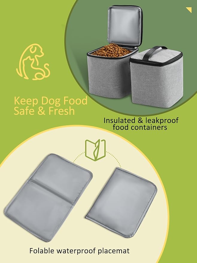- Keep Dog Food Fresh: Two large dog food containers can hold up to a week’s worth of food depending on the dog. And the food carriers are fully insulated and leak-proof, keeping your pooch’s food/treats fresh and safe no matter where you go, on a hillside or the beach.
