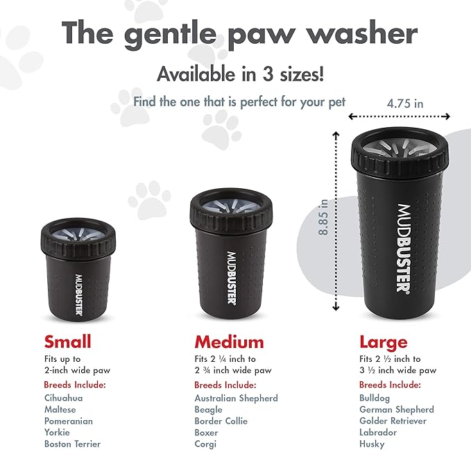 - DOG ESSENTIAL: Keep the MudBuster paw cleaner for dogs handy after trips to the park, after walks or hikes, or by your backdoor. The essential dog product you need.