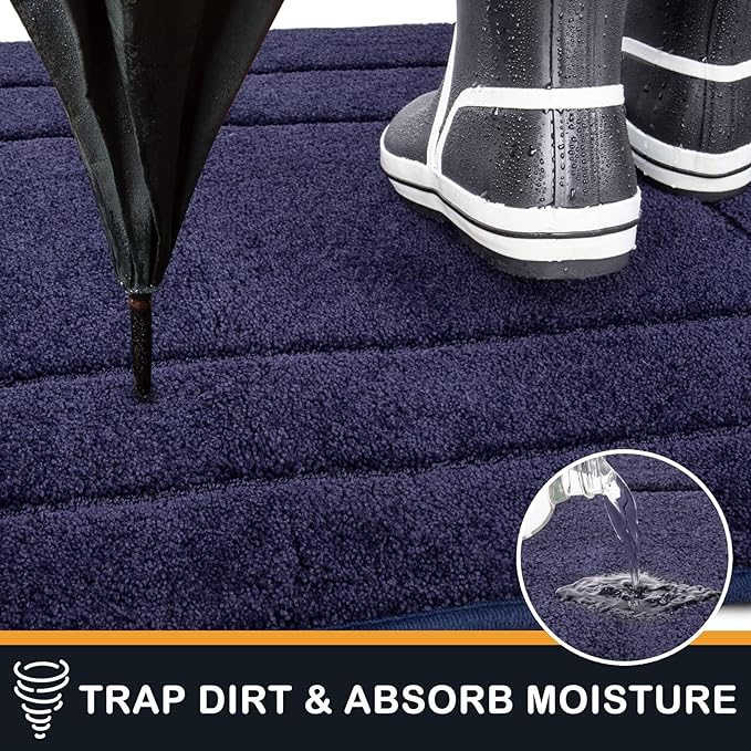 PURRUGS Dirt Trapper Door Mat 32" x 70", Non-Slip/Skid Machine Washable Entryway Rug, Dog Door Mat, Super Absorbent Welcome Mat for Muddy Wet Shoes and Paws, Navy Blue