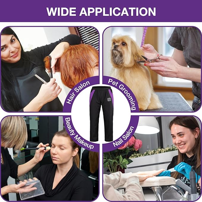 - 🐶🐶【Stay Dry Styling】-- This lightweight grooming pants is made from cotton polyester which keeps your clothing clean and protects yourself from flying hair and suds. Whether for professional pet shop use or home use, these ightweight, cool & comfortable trousers are ideal additions to you.