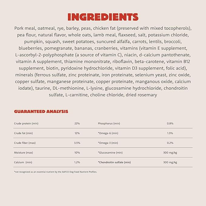 Farmstead Feast, Dry Dog Food, Pork Meal and Lamb Meal Adult Recipe with Grains, 5 lb Bag
