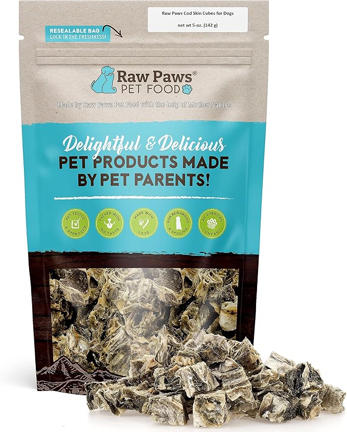 Raw Paws Cod Skin Cubes for Dogs, 5-oz – Cod Skins for Dogs - Fish Skins for Dogs - Fish Skin Chews for Dogs - Cod Skin Dog Treats - Cod Treats for Dogs - Crunchy Cod Treats for Dogs - Cod Dog Treats