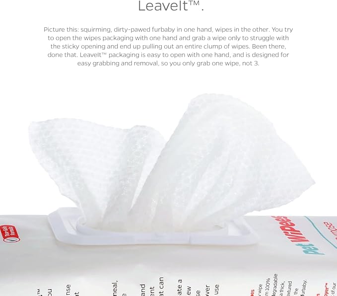 - INTENTIONAL PACKAGING: With a wiggly furbaby in one hand, the last thing you need is hard to open puppy wipes that clump when you pull them out. Pet WiPees innovative LeaveIt packaging prevents clumping, so you only pull one, not three wet wipes for dogs and cats. These dog grooming wipes feature a resealable lid, preventing the doggy wipes from drying out, and making for easy one-handed use. For when your furbaby didn't have 'getting butt wiped' on their agenda, Pet WiPees help make it easy.