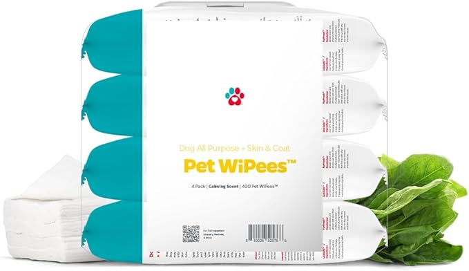 Pet Parents® Pet WiPees™ Dog All Purpose + Skin & Coat Pet Wipes, Pet Wipes for Dogs, Dog Wipes & Puppy Wipes, Paw Wipes for Dogs (100 Count (Pack of 4), Natural)