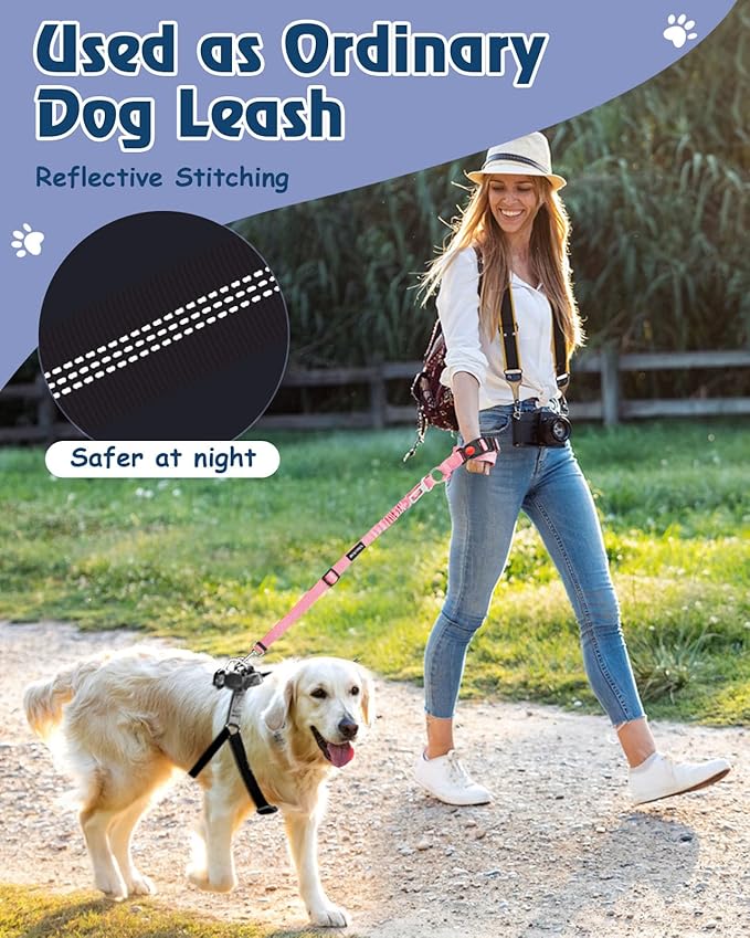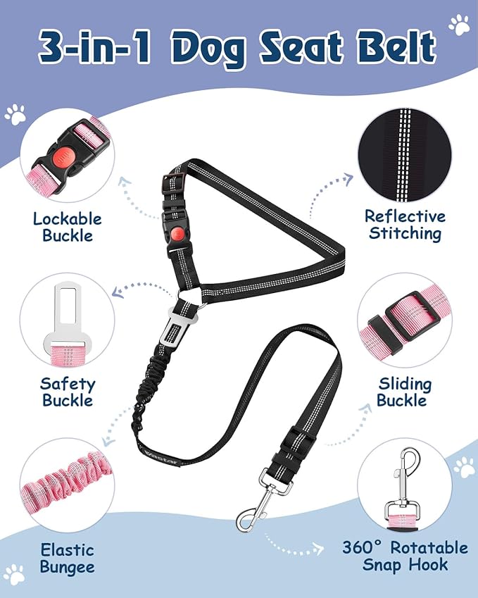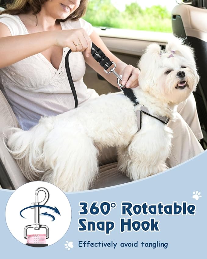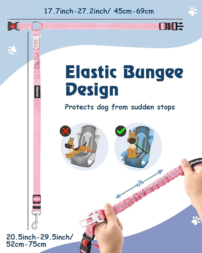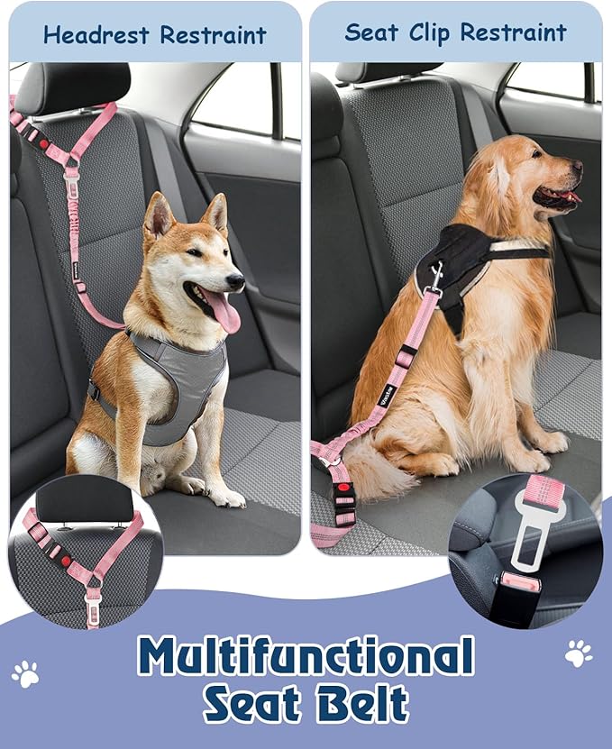 Vastar 2 Pack Dog Seat Belt for Car, 3-in-1 Dog Car Seatbelt, Adjustable Pet Seat Belt, Safety Headrest Restraint Dog Car Belt with Reflective Elastic Bungee, Poop Bag Holder