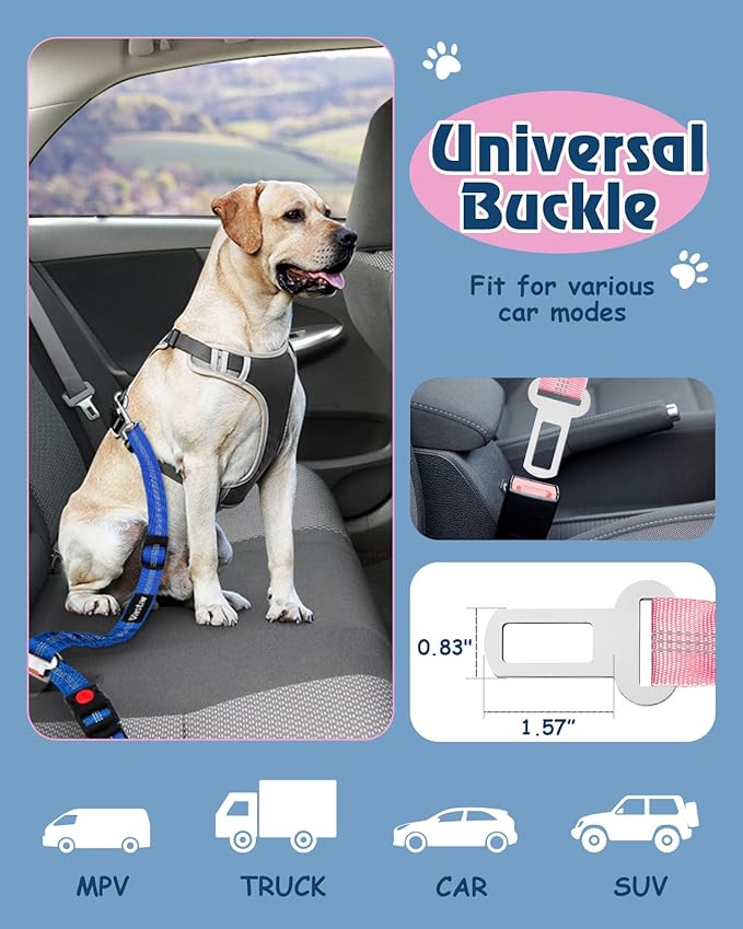 - 3 in-1 Versatile Use - To ensure optimal restraint and protection during travel, Vastar dog seatbelt boasts a versatile design that offers flexibility in its application. It can be affixed by suspending it from headrest or inserting it into the vehicle's seatbelt buckle, thereby accommodating a wide array of vehicle models. Additionally, it features an ingenious reflective stitching design, serving as a dependable dog leash, facilitating nocturnal dog walks with enhanced safety and visibility