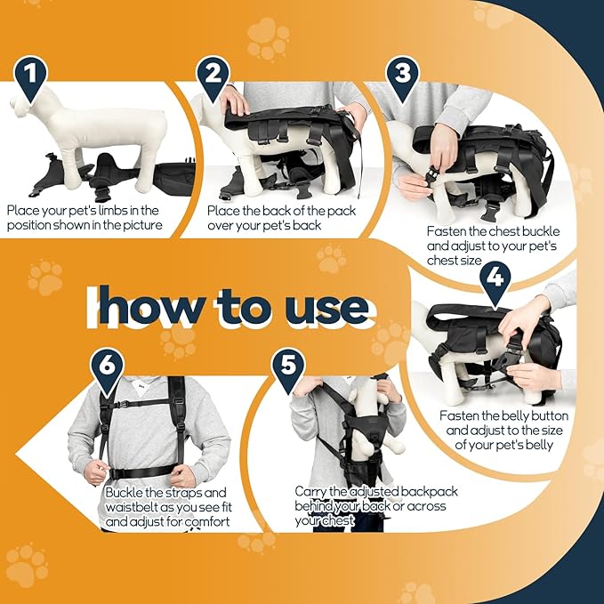 - Easy to Wear: The adjustable buckles on this backpack make it easy for pets to wear. We strongly recommend reading our user manual before use to avoid any issues and ensure a smooth experience with our dog backpack. Additionally, calming your pet before putting on the backpack will make the process even easier