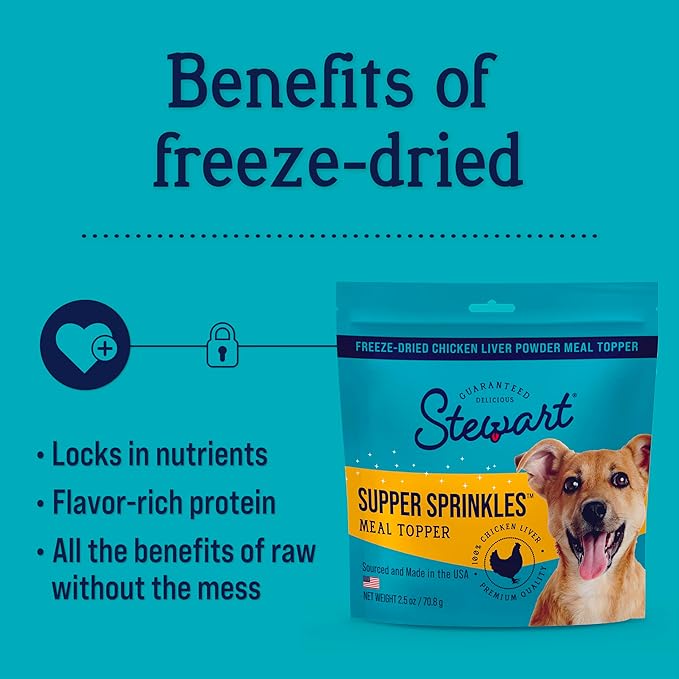 Stewart Chicken Liver Supper Sprinkles, Dog Food Toppers, Chicken Liver, 2.5 oz. Resealable Bag, Made in USA, Products for Dogs
