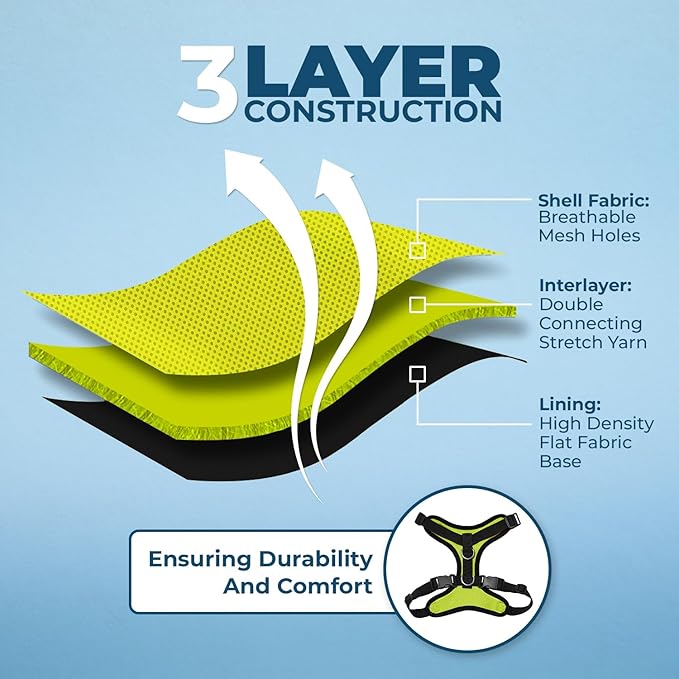 - ALL WEATHER AIR MESH: Made a soft, breathable air mesh, this fully adjustable and lightweight pet harness is perfect for walks all year round