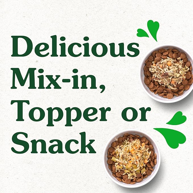 - Real Ingredients: This grain-free* wet dog food mix-in is made with real, recognizable ingredients, including a green vegetable, and hints of parsley and flaxseed oil. *Trace amounts may be present due to potential cross-contact during manufacturing