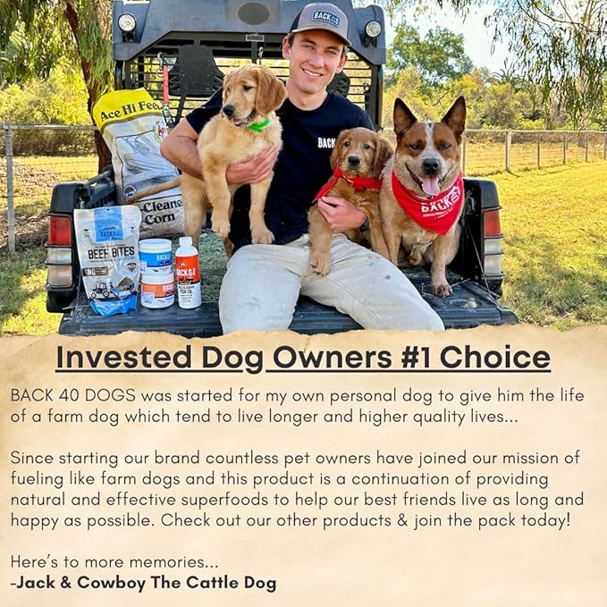 - Trusted Quality by Back 40 Dogs: Committed to providing the best for your pets, Back 40 Dogs ensures every batch of our beef broth supplement is made to the highest standards, so you can feel confident in the care you give your beloved pet.