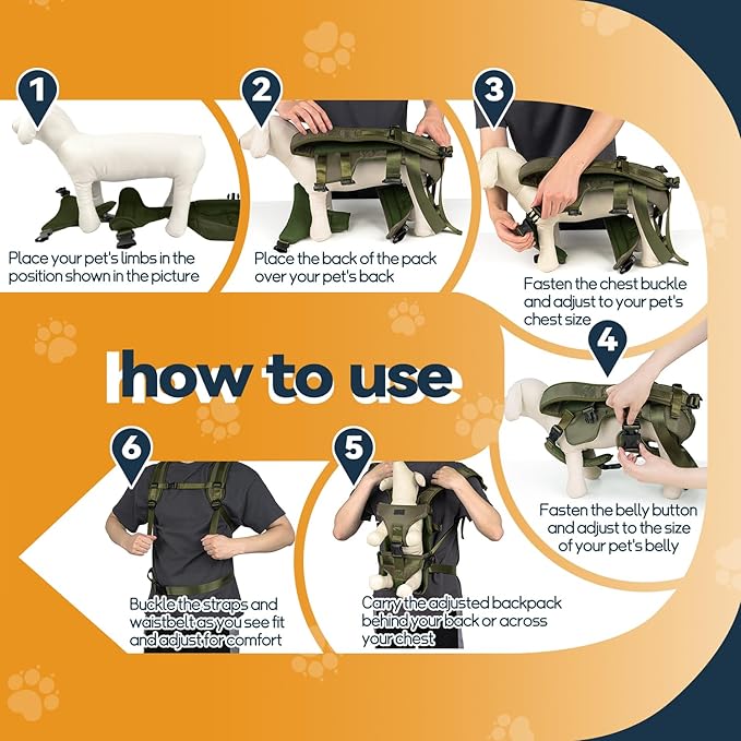 - Easy to Wear: The adjustable buckles on this backpack make it easy for pets to wear. We strongly recommend reading our user manual before use to avoid any issues and ensure a smooth experience with our dog backpack. Additionally, calming your pet before putting on the backpack will make the process even easier