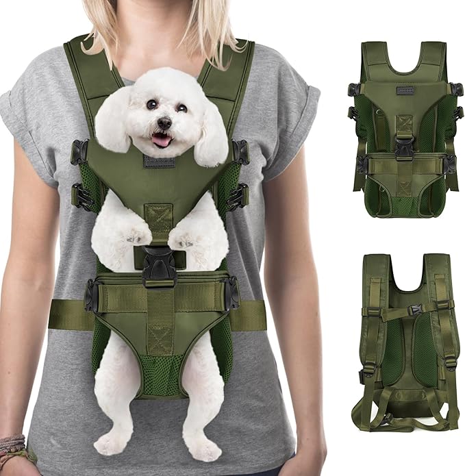 YUDODO Dog Backpack Carrier with Adjustable Safety Buckle Easy-fit Pet Dog Front Carrier for Small Medium Dog Legs Out Dog Chest Carrier for Traveling Walking Cycling (Small, Army Green)