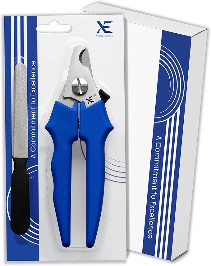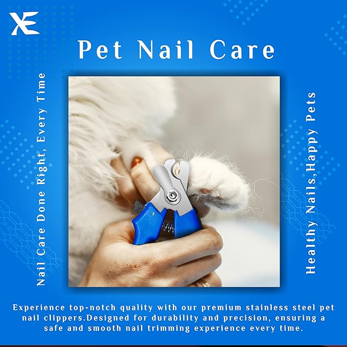 XE Stainless Steel Pet Nail Clipper – Non-Slip Handle Nail Cutter for Pets with Protection Guard, Cat and Dog Claw Trimmer with Nail File, Professional Grooming Tool for Dogs, Cats & Other Pets