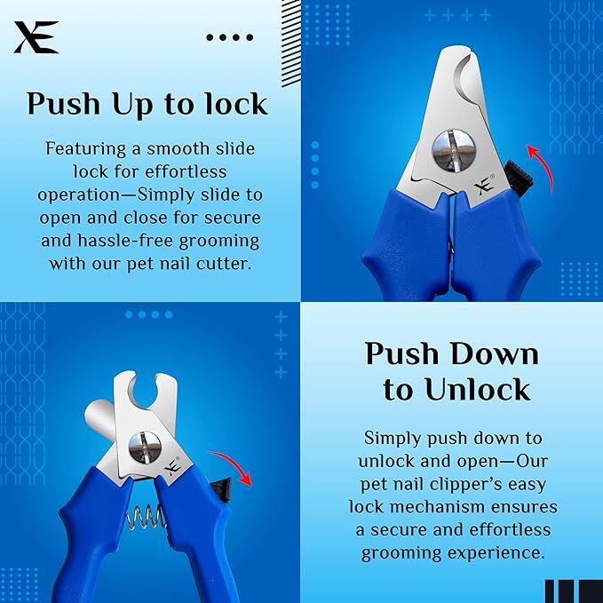 - Safe and Easy Grooming: Cat and dog nail clipper is equipped with dual safety guards one to securely lock the clipper when not in use and another to limit the blade’s exposure, ensuring safe grooming for your pets.