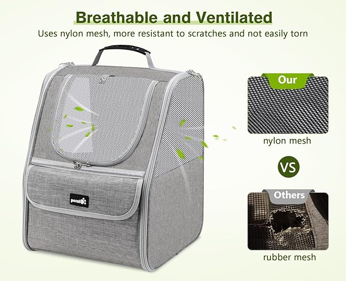 - 【 PREMIUM MATERIALS FOR LONG-LASTING 】: The Pecute pet backpack is crafted from premium 300D Cationic Oxford fabric with PVC inner, ensuring tear resistance, non-toxicity, and non-irritation. The mesh fabric we use is made of nylon material, which is more durable than rubber mesh and not easily scratched by pets