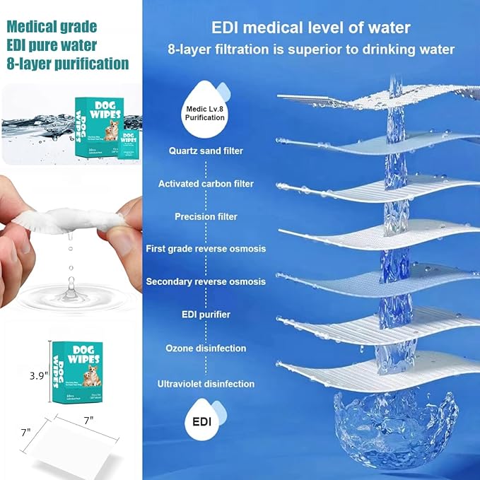 - 【Gentle Ingredients】Pet Wipes are enriched with EDI water,gentle glycerin,tea tree extract, witch hazel extract and aloe vera extract,making them suitable for pets of all ages,including those with sensitive skin.Alcohol-free,and PH balanced.It can effectively clean deodorize and nourishes smoothes fur,enhance the resistance of the fur,support skin health, reduce the occurrence of fur problems.Safe if licked.our wipes are designed to provide a gentle yet effective cleaning experience.