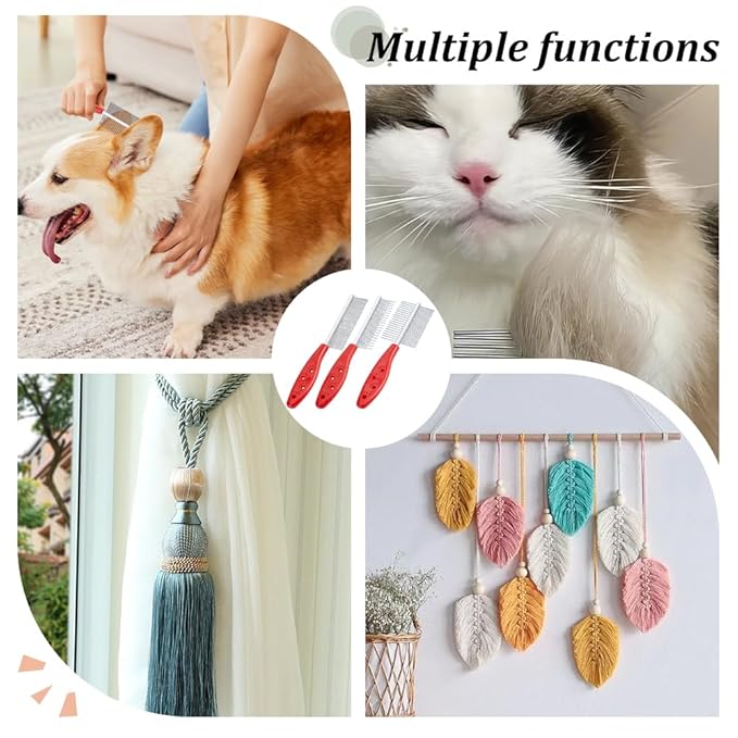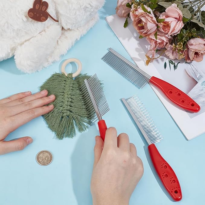 OLYCRAFT 3Pcs 3 Styles Stainless Steel Pet Combs Macrame Fringe Combs Pet Combs with Plastic Handle Metal Tassel Combs Pet Grooming Comb for Removing Tangles and Knots Grooming Tool Tassel Brush