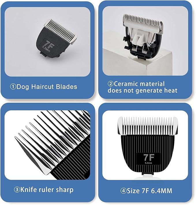 Size 4F/5F/7F/Replacement Blade for nebot P1 Pro Pet Grooming Kit & Vacuum,Cut Length 3/8"(9.5mm) to 1/4”(6.3mm) to 1/8"(3.2mm),Made of Ceramic Blade & Stainless Steel Blade,3 Pack